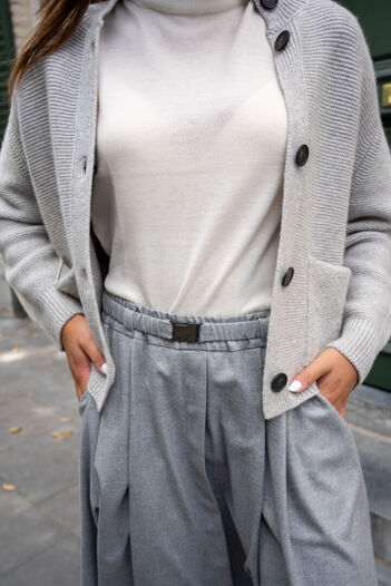 ‘De liefde voor mooie dingen kreeg ik van mijn moeder mee’. Dat zie je ook aan de collectie luxe designermerken. ‘ Ik vind het fijn om mijn eigenheid door te geven in de keuze van de kledingstukken. De samenstelling van de collectie bepaalt voor een groot deel de stijl van de winkel. De stoffen en snit moet je zien, voelen en passen. Ik sta voor u klaar om u hierbij het juiste advies te geven.